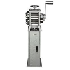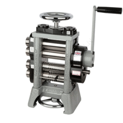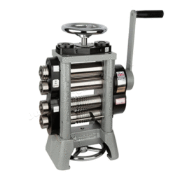 Dieses außergewöhnliche Walzmaschine verfügt über zwei Walzensätze, den oberen Satz für das Flachwalzen und den unteren Satz für das Walzen mit Vierkantdraht. Beide Rollensätze haben auch Verlängerungsrollen. Die oberen Rollen enthalten vier halbe Runden und die unteren Rollen zusätzliche drei halbe Runden. Das Walzwerk wird mit zwei Drehhebeln geliefert. Die erste wird für schweres Rollen verwendet und beinhaltet eine Untersetzung von 11-1. Der zweite Drehhebel kann zum leichteren Rollen mit der doppelten Geschwindigkeit und einem Übersetzungsverhältnis von 5-1 verwendet werden. Das Umschalten des Hebels dauert nur wenige Sekunden. Die obere Mühle verfügt über eine extra breite flache Fläche von 158 mm zwischen zwei Walzen mit einem Durchmesser von 60 mm, die jeweils eine maximale Walzendicke von 6 Millimetern ermöglichen. Die Bodenmühle hat insgesamt 19 quadratische Drahtnuten, die ein Walzen des Drahtes von 10 mm auf 1 mm ermöglichen. Die Seitenverlängerungen ermöglichen ein halbrundes Rollen von 8, 7, 6, 5, 4, 3, 2 und 1,5 mm. Zu den Sicherheitsmerkmalen gehört, dass alle Getriebe mit einem Kunststoffgehäuse abgedeckt sind. Die Mühle selbst besteht aus einem einzigen Stück Gusseisen, um die Steifigkeit und Festigkeit zu maximieren. Alle Walzen sind induktionsgehärtet auf 240 RC, um sicherzustellen, dass Ihre Walzen ein Leben lang halten. Dies ist ein außergewöhnliches Arbeitstier eines Walzwerks und bietet jahrelangen Service.
