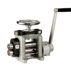 Das Durston DRM C100RE Walzmaschine verfügt über ein selbstschmierendes 4-zu-1-Getriebe, das maximale Effizienz beim Walzen von Materialien bis zu 5,5 mm oder Draht bis zu 7 mm bietet. Die 100 mm präzisionsgehärteten Walzen haben 9 quadratische Walznuten mit einer Größe von 7 mm bis 1 mm eine 65 mm flache Rollfläche (Gesamtrollenbreite 100 mm) Der DRM C100RE enthält auch seitliche Verlängerungsrollen mit 4 halbrunden Profilen, 4 mm x 1,25 mm, 3 mm x 1 mm, 2 mm x 0,75 mm und 1,5 mm x 0,5 mm, was professionellen Schmuckherstellern noch mehr Flexibilität bietet. Stellen Sie dieses Walzwerk mühelos mit dem oben montierten Rad ein, das auf präzise Genauigkeit kalibriert ist. Wie bei allen Durston-Walzwerken der DRM-Reihe besteht die Karosserie aus massivem Gusseisen mit ultimativer Festigkeit, das in Kombination mit induktionsgehärteten RC64-Walzen eine Lebensdauer von 1 mm gewährleistet Rollen mit professionellen Ergebnissen.