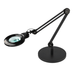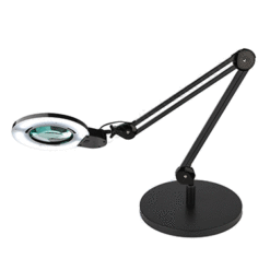 Das vierstufige Dimmen erfüllt alle Anforderungen an die Arbeitsplattenbeleuchtung. Die Lupenlampe zeichnet sich durch ein leicht zu wechselndes Objektiv aus, das eine Vergrößerung von fünf Dioptrien bei 225% und einer Brennweite von 20 Zentimetern – also einen hervorragenden Betriebsabstand zum Werkstück – sowie eine Vergrößerung von acht Dioptrien bei 300% bietet Hervorragende Fähigkeit zur Nahinspektion oder Feinarbeit. Durch den vollflexiblen Arm können Sie die Lampe genau dort positionieren, wo Sie sie benötigen. Optional ist eine gewichtete Tischhalterung erhältlich, die mehr Flexibilität bietet.