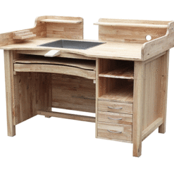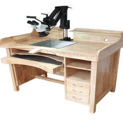 Die Durston Setters Bench wurde für Fasser, Graveure und Schmuckhersteller entwickelt. Diese Bank aus massivem Hartholz verfügt über viele einzigartige Funktionen, die für professionelle oder unerfahrene Schmuckhersteller geeignet sind. Die Setters Bench verfügt über eine in die Tischplatte integrierte Arbeitsablage aus Edelstahl, die sich ideal für Detailarbeiten aus nächster Nähe wie Fassen oder Gravieren eignet. Perfekt für die Verwendung mit einem Mikroskop oder Graveur. Die Tischplatte umfasst einen abnehmbaren Bankpflock, Rücken- und Seitenschutz mit Kabeldurchführungsloch, eine hintere Ablage und Werkzeughalter auf jeder Seite.