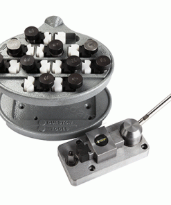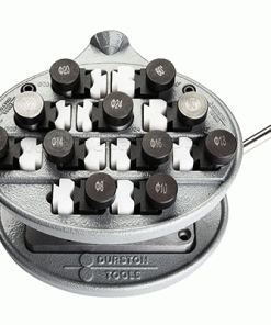 Das neue 11-teilige Ringschaft-Biegewerkzeug von Durston enthält elf Matrizensätze (neun Runden: 8, 10, 12, 14, 16, 18, 20, 22 und 24 mm, ein Quadrat und ein Rhombus). Die Matrizen sind aus Werkzeugstahl gefertigt und wurden gehärtet und poliert und wurden für hervorragende Leistung präzisionsgefertigt. Jede runde Matrize hat eine abgerundete Kante, um jegliche Beschädigung des zu formenden Materials zu minimieren. Das einzigartige Getriebesystem bietet eine große Untersetzung und macht das Biegen mühelos. Dieser Ringbieger biegt Material mit einer Dicke von bis zu 2 mm. Ebenfalls im Set enthalten sind Delrin-Matrizen für alle 11 Teile. Das Set ist kompakt, wobei die untere Hälfte den Hauptkörper aufnimmt. Der Hauptkörper kann in den Tabletthalter selbst eingesetzt werden. Schwenken Sie einfach die Oberseite aus dem Weg oder nehmen Sie sie heraus und schrauben Sie sie an einen Tisch. Alternativ den Schraubstock aufschrauben und in einen Schraubstock einspannen.